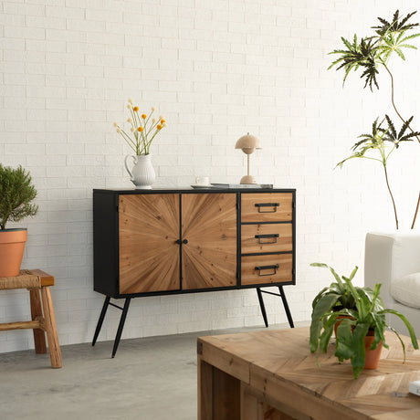 31"L x 14"W x 37"H, Radiating Reclaimed Wood Parquet
