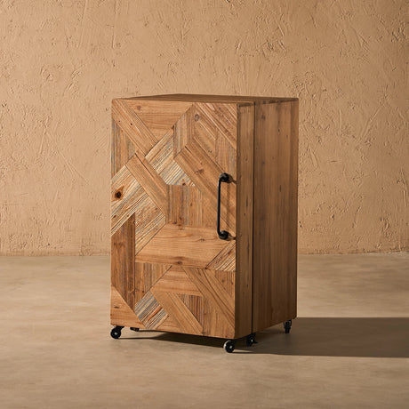 20"L x 19"W x 34"H, Wood Parquet, Wheels