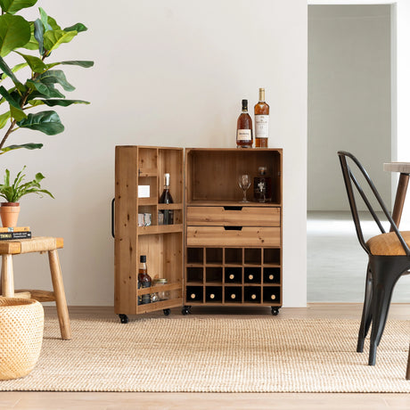 Wine and Liquor Cart with Glass Hangers and Working Tabletop