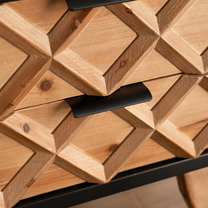 Each drawer front is a unique work of art, featuring intricately pieced wood parquet. This hand-assembled technique ensures no two are alike, bringing one-of-a-kind, artisanal character directly into your home.