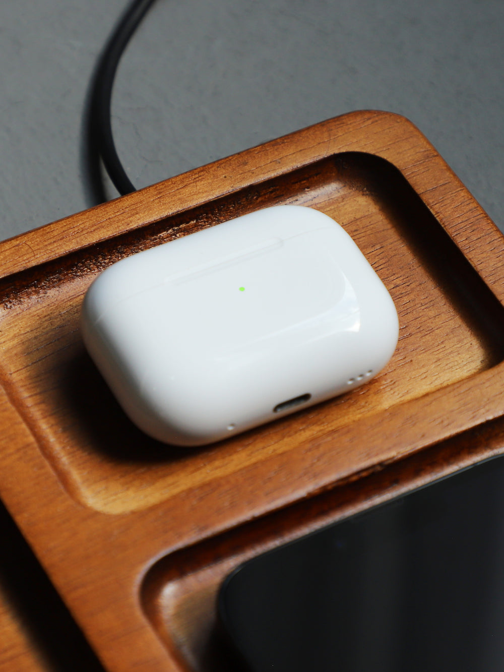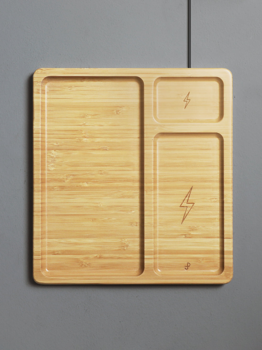 Bamboo Organizer Tray with Dual Wireless Charger - Bamboo is backordered and will ship as soon as it is back in stock.