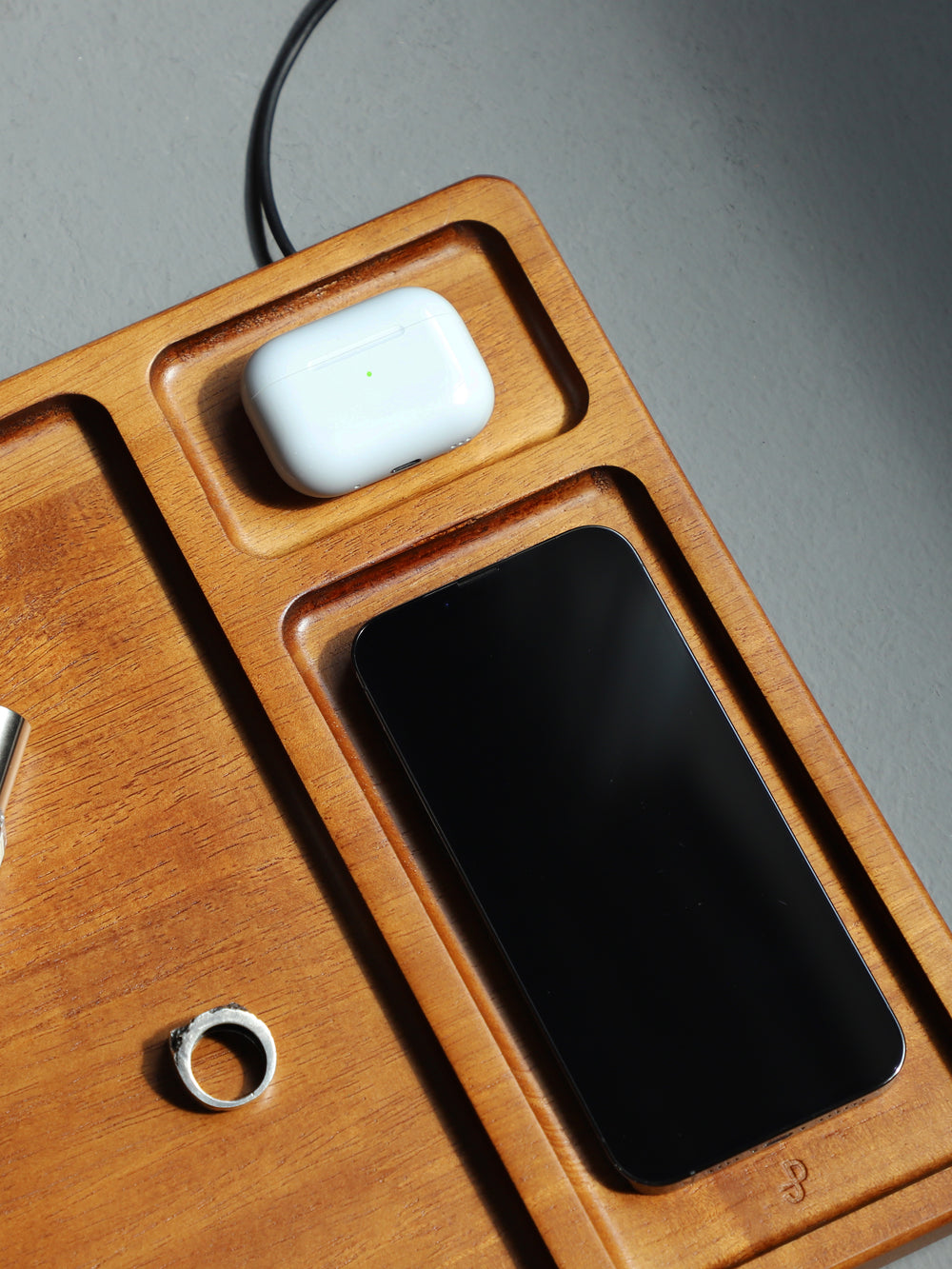 Bamboo Organizer Tray with Dual Wireless Charger