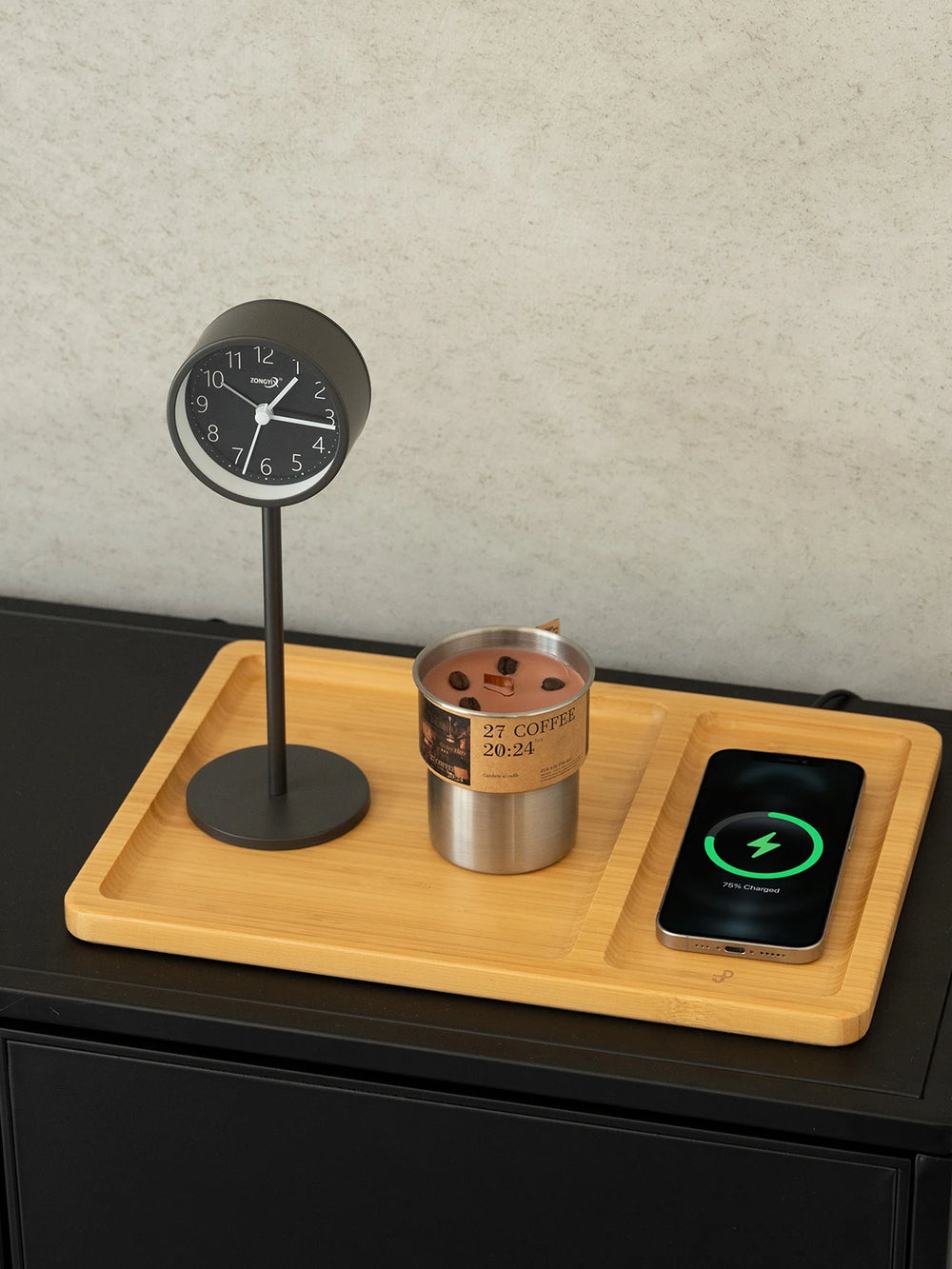 Bamboo Valet Tray with Wireless Charging