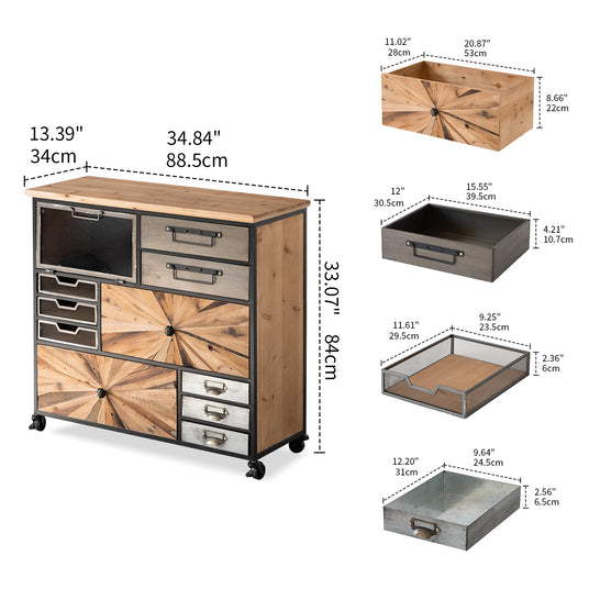 34"x33" Multi-Drawers Vintage Cabinet with Wheels