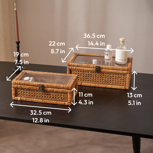 The Rattan Organizer Box with Glass Cover and all of our other pieces are a tribute to nature’s perfection and imperfections—the knots, grains, and textures that told the story of the material’s origins. Furniture should not only serve a functional purpose but also should embody the artistry of mother nature herself.