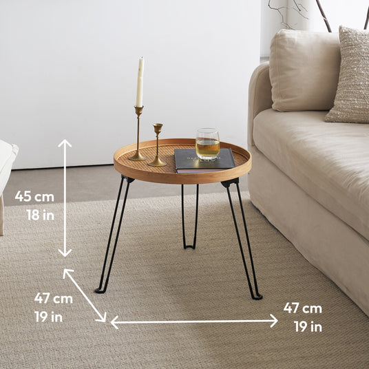 The Round Wood and Rattan Side Table and all of our other pieces are a tribute to nature’s perfection and imperfections—the knots, grains, and textures that told the story of the material’s origins. Furniture should not only serve a functional purpose but also should embody the artistry of mother nature herself.